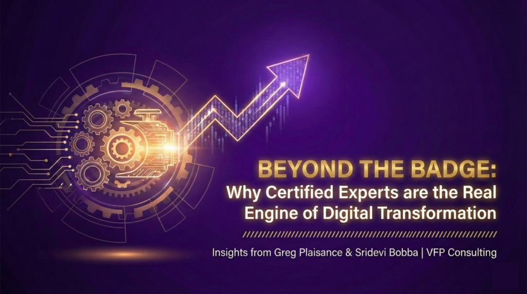 Insights from Greg Plaisance, Managing Consultant, and Sridevi Bobba, Senior Technical Consultant at VFP Consulting In today’s economy, organizations are racing to adopt platforms like Salesforce and Certinia to build resilience and modernize operations. However, the difference between transformative success and a system plagued by rework rarely lies in the technology itself—it lies in the… Continue reading Beyond the Badge: Why Certified Experts are the Real Engine of Digital Transformation